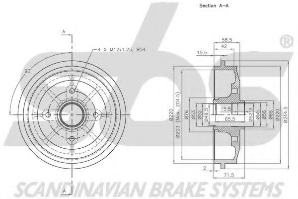 Inaltime tot. tambur frana 71,5